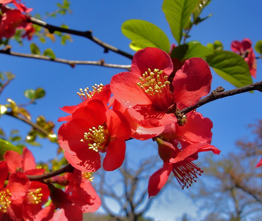 Small Business CHAENOMELES Flowering Quince 3-Pack 5 pots Texas Scarlet- Red 11 2700. In early spring branches are covered with small red orange pink or white rose-like blooms. Free Shipping On Orders 150.